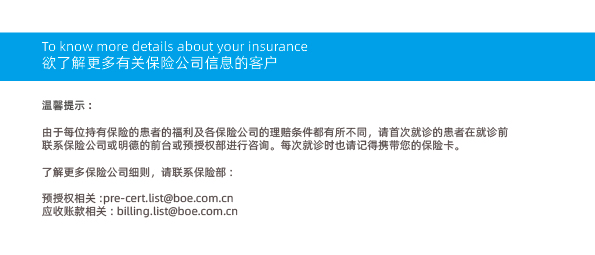OASIS International Hospital has signed insurance direct payment agreements with many domestic and foreign insurance companies. You can call us or bring your health insurance card to our Information Desk for information about your personal benefits. The insurance companies we can pay directly include but are not limited to the following:"